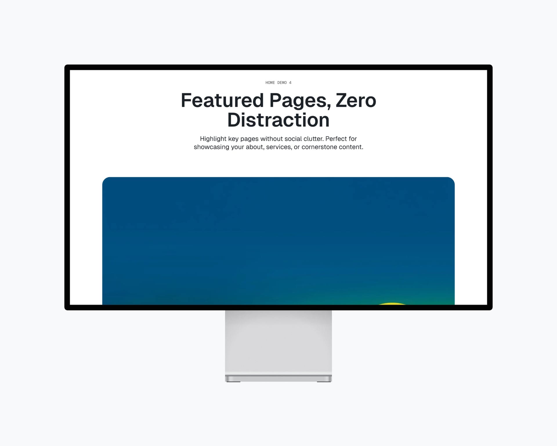 We've obsessed over every pixel. Your homepage welcomes visitors with stunning background imagery and a clean, minimal hero that lets your message shine.