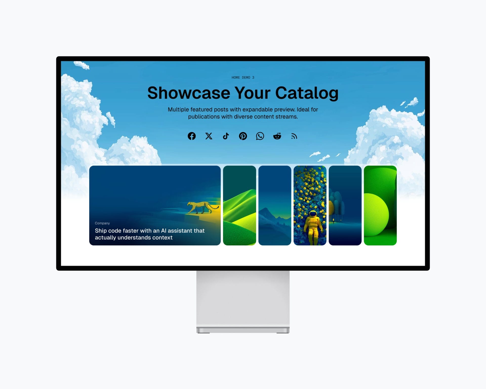 Choose from 6 distinct post layouts to match your content's mood. Add logoboards to showcase partners, testimonials to build trust, or author sections to highlight your team.